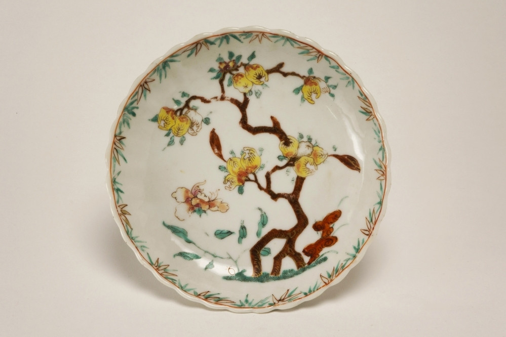 Schotel Meer informatie Collectie Jan Menze van Diepen Stichting Beschrijving Gelobd schoteltje met gegolfde rand. Op het plat een bruine tak met gele citroenvrucht bloemen. Langs de rand bruine en groene bamboeblaadjes. Details Materiaal/techniek gebakken keramiek Inventarisnummer JMD-P-0802 Objectsoort schotel Deel dit voorwerp Deel dit object op Facebook Deel dit object op Twitter Deel dit object op Instagram Deel dit object op Pinterest Deel dit object op WhatsApp