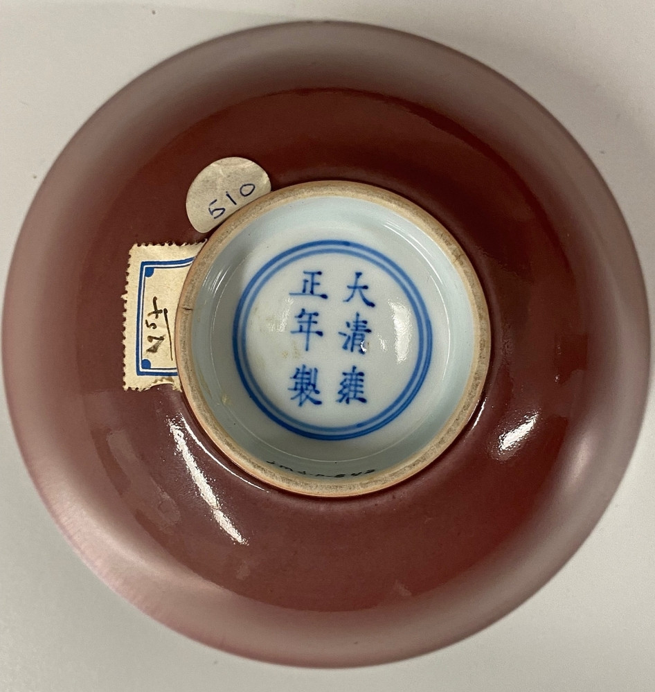 Witte kom op standring met een spreidende wand. De buitenzijde heeft een egaal leverkleurig glazuur. Yung-cheng.