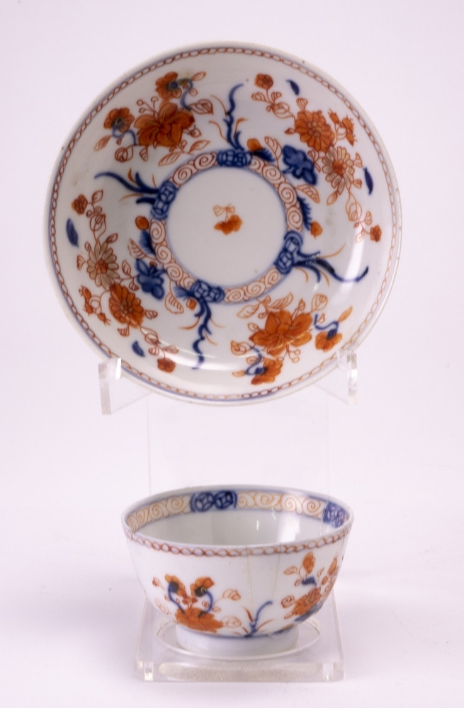 Delftse blauw gedecoreerde aardewerk schotel met okergele lijn op de rand, Chinoiserie decor van bloemen bij hek. Gemerkt; De Porceleyne Bijl, Delft.