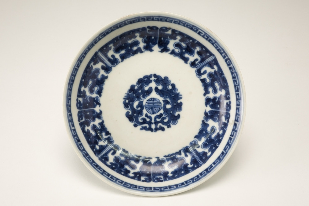 Bord Meer informatie Collectie Jan Menze van Diepen Stichting Beschrijving Wit diep bordje met drie donkerblauwe sierranden en in het midden een Shou merkteken (geluk). Hier omheen een krans van bladeren. Details Materiaal/techniek gebakken keramiek Inventarisnummer JMD-P-1811 Objectsoort bord Deel dit voorwerp Deel dit object op Facebook Deel dit object op Twitter Deel dit object op Instagram Deel dit object op Pinterest Deel dit object op WhatsApp