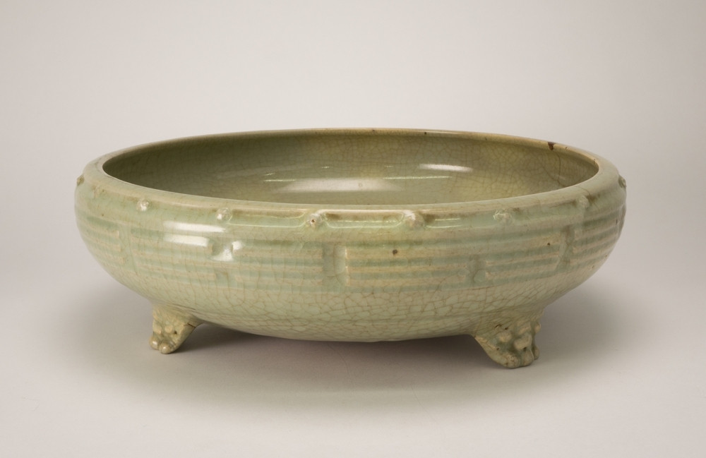 Schaal Meer informatie Collectie Jan Menze van Diepen Stichting Beschrijving Grote Celadon bollenschaal op drie pootjes. De pootjes zijn in de vorm van drakekoppen in reliëf. Op de buitenrand een reliëfversiering met acht trigrammen. Details Materiaal/techniek gebakken keramiek Inventarisnummer JMD-P-2093 Objectsoort schaal Deel dit voorwerp Deel dit object op Facebook Deel dit object op Twitter Deel dit object op Instagram Deel dit object op Pinterest Deel dit object op WhatsApp