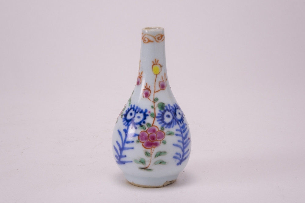 vaas Meer informatie Collectie Jan Menze van Diepen Stichting Beschrijving Famille rose knotsvormig miniatuurvaasje. Langs de rand een ijzerrood sierrandje. Op de buitenzijde drie bloemen in onderglazuur blauw, afgewisseld met drie faille rose bloemtakken. Details Materiaal/techniek gebakken keramiek Inventarisnummer JMD-P-2350 Objectsoort vaas Deel dit voorwerp Deel dit object op Facebook Deel dit object op Twitter Deel dit object op Instagram Deel dit object op Pinterest Deel dit object op WhatsApp