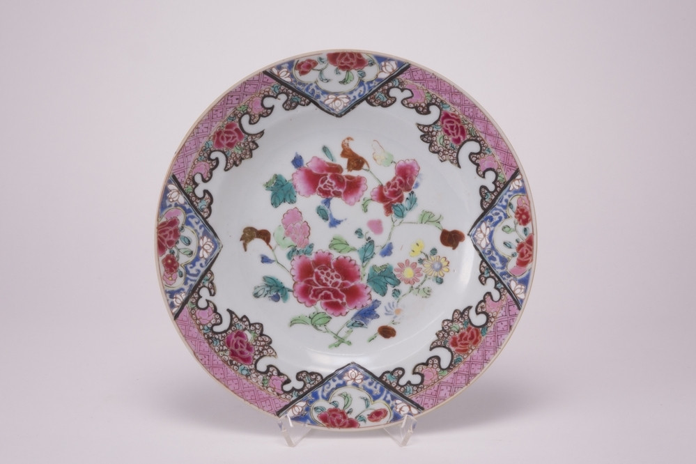 Bord Meer informatie Collectie Jan Menze van Diepen Stichting Beschrijving Famille rose bord met op het plat meerkleurige pioendecoraties.Op de drukbewerkte roze rand o.a. vier zwarte driehoeken of servetten met bloemen. Details Materiaal/techniek gebakken keramiek Inventarisnummer JMD-P-2705 Objectsoort bord Deel dit voorwerp Deel dit object op Facebook Deel dit object op Twitter Deel dit object op Instagram Deel dit object op Pinterest Deel dit object op WhatsApp