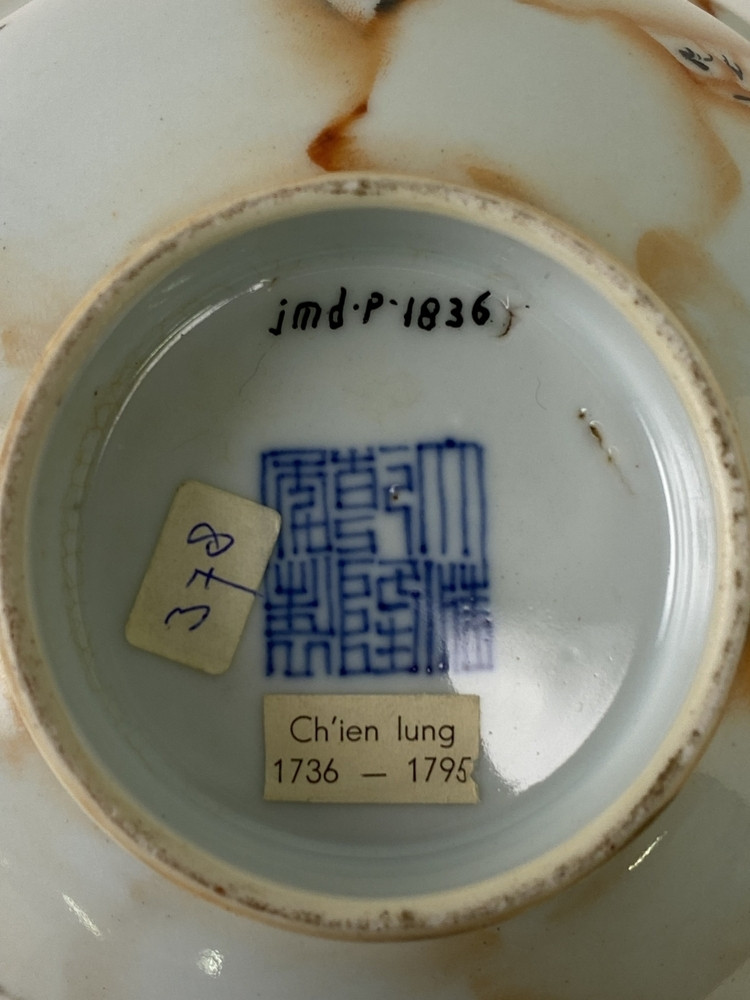 Merkteken op de onderzijde.(Da Qing Qianlong Nian Zhi) <br/ >