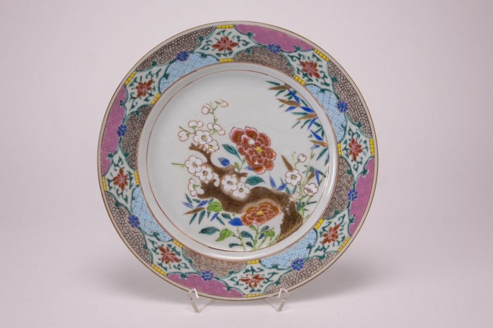 Bord Meer informatie Collectie Jan Menze van Diepen Stichting Beschrijving Wit rond bord met op het plat een famille rose pioendecor met een dikke bruine tak, bamboebladeren en een prunustak. Op de rand een Famille rosedecor met acht uitsparingen waarin pioenrozen zijn aangebracht. Details Materiaal/techniek gebakken keramiek Inventarisnummer JMD-P-2401 Objectsoort bord Deel dit voorwerp Deel dit object op Facebook Deel dit object op Twitter Deel dit object op Instagram Deel dit object op Pinterest Deel dit object op WhatsApp