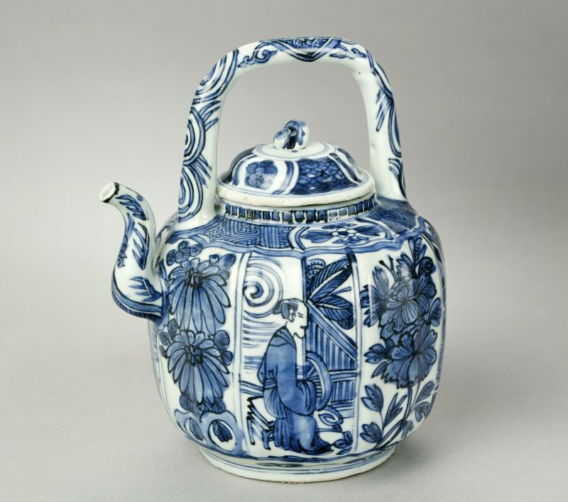 Rijksmuseum Amsterdam Covered ewer with powder blue and panels in reserve with flower sprays and birds