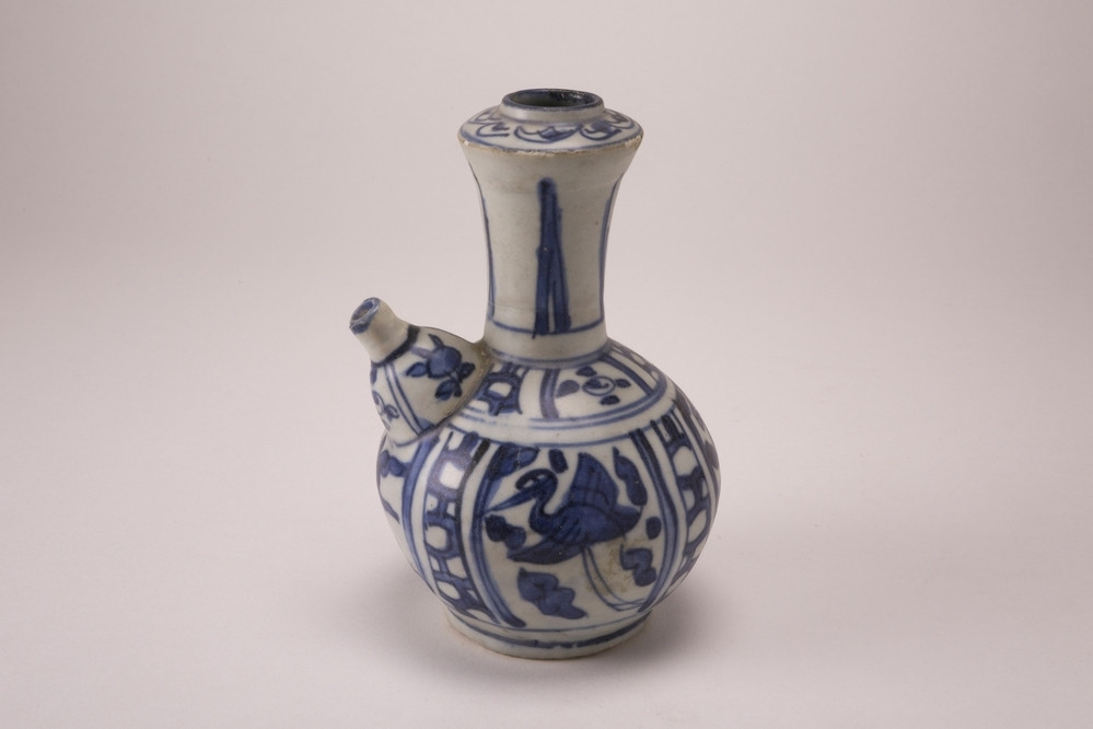 Rijksmuseum Amsterdam Cylindrical vase with powder blue and two panels with a woman in a fenced garden