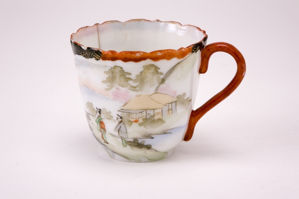 Rijksmuseum Amsterdam Rectangular tea caddy with a water landscape and the arms of the Bollaert family