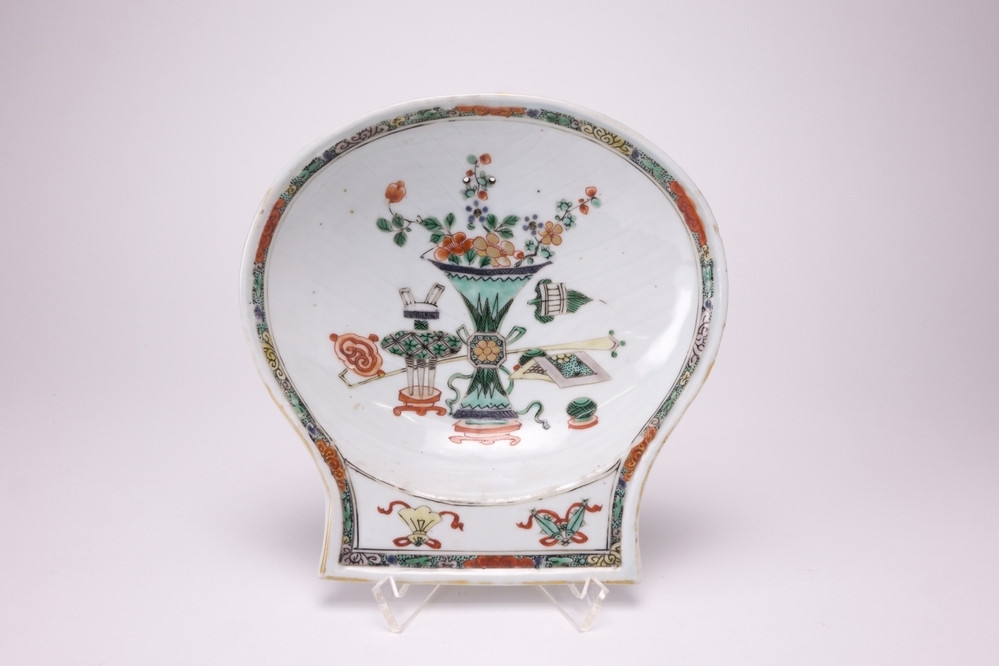 Rijksmuseum Amsterdam Beaker vase with flowering plants near a rock, diaper pattern and floral scrolls