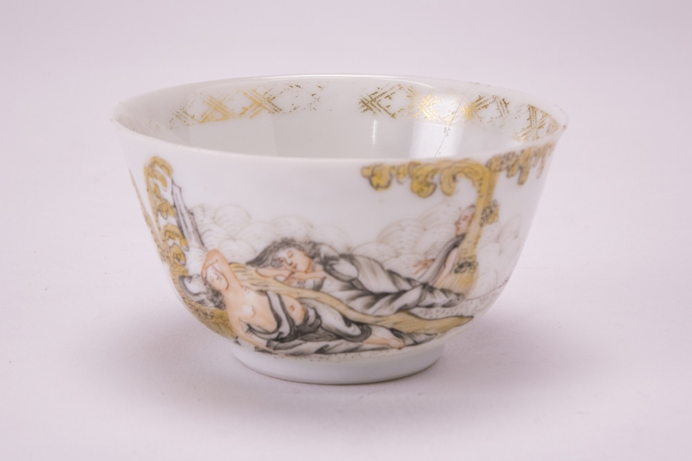 Bell-shaped bowl with women and flower sprays