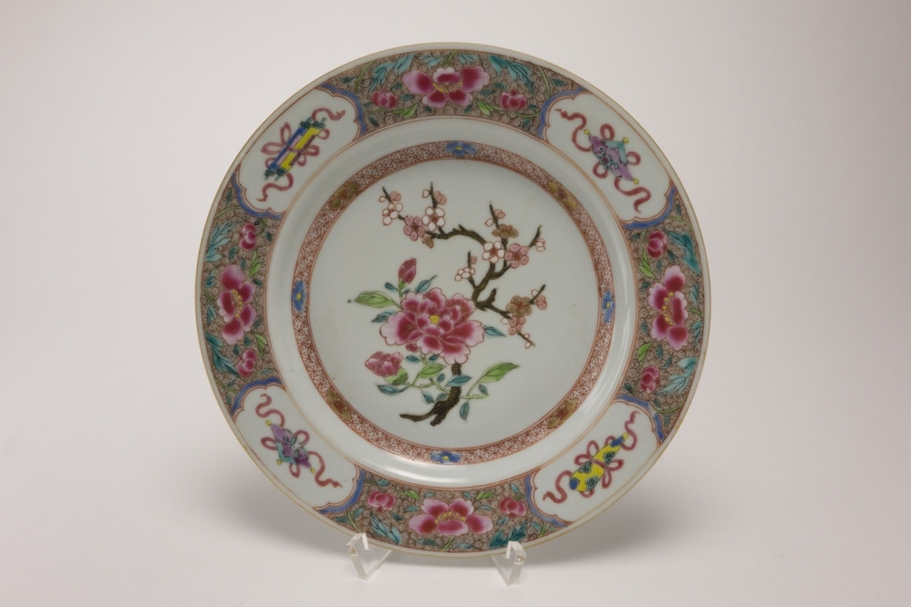 Rijksmuseum Amsterdam Bell-shaped cup and saucer with bouquets and floral scrolls on a diaper-patters ground