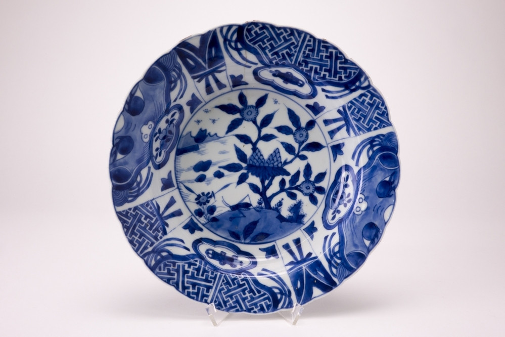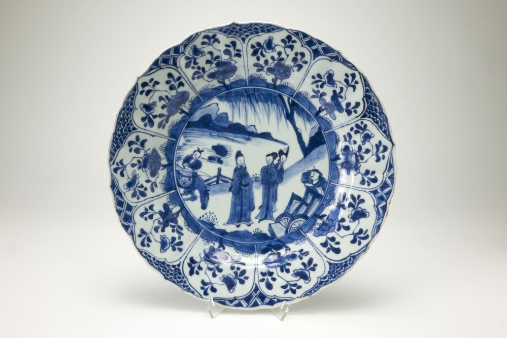 Saucer with a Chinese junk and the arms of Amsterdam