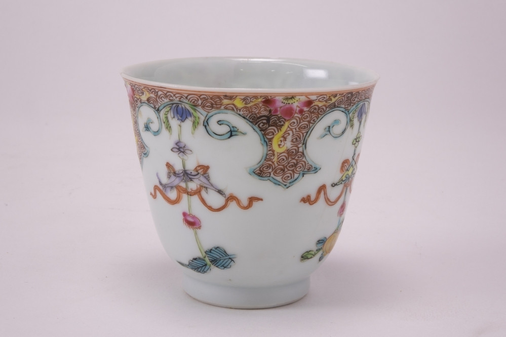 Rijksmuseum Amsterdam Beaker vase with figures, flower sprays and auspicious symbols in shaped panels on a multi-colored ground