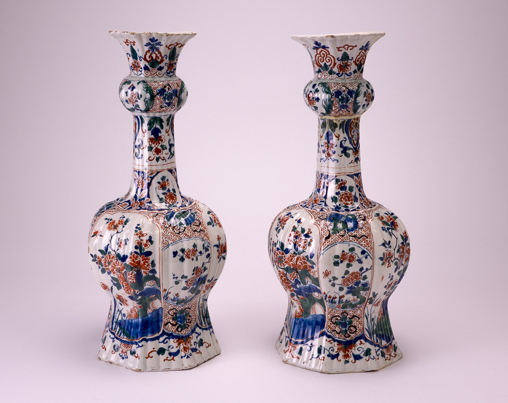 Rijksmuseum Amsterdam Beaker vase with flowering plants near a rock, diaper pattern and floral scrolls