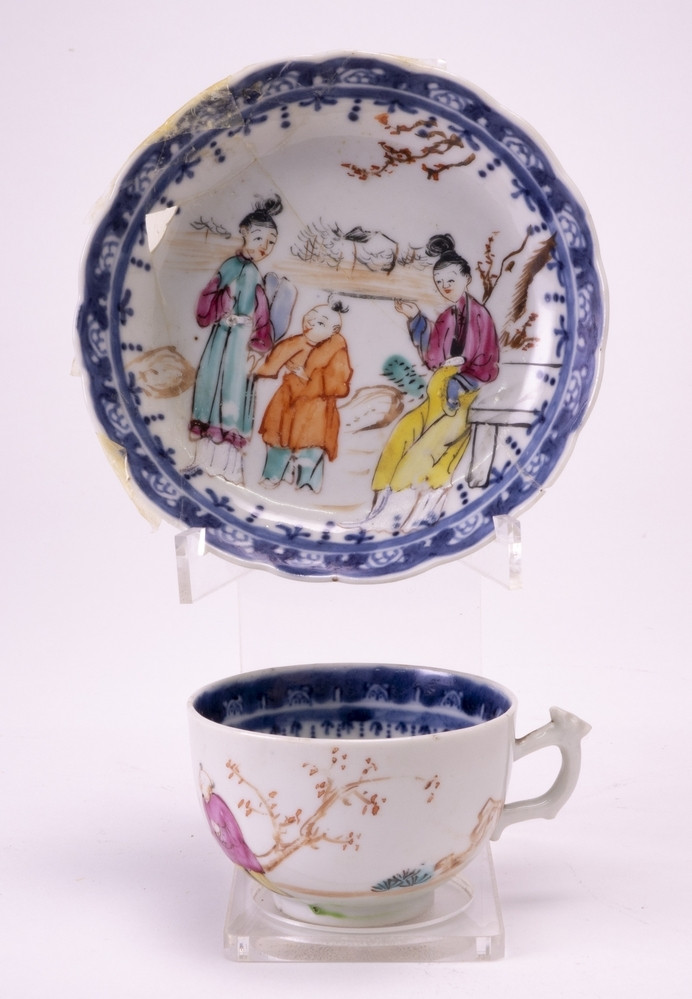 Octagonal cup with dancing boys and flowering plants