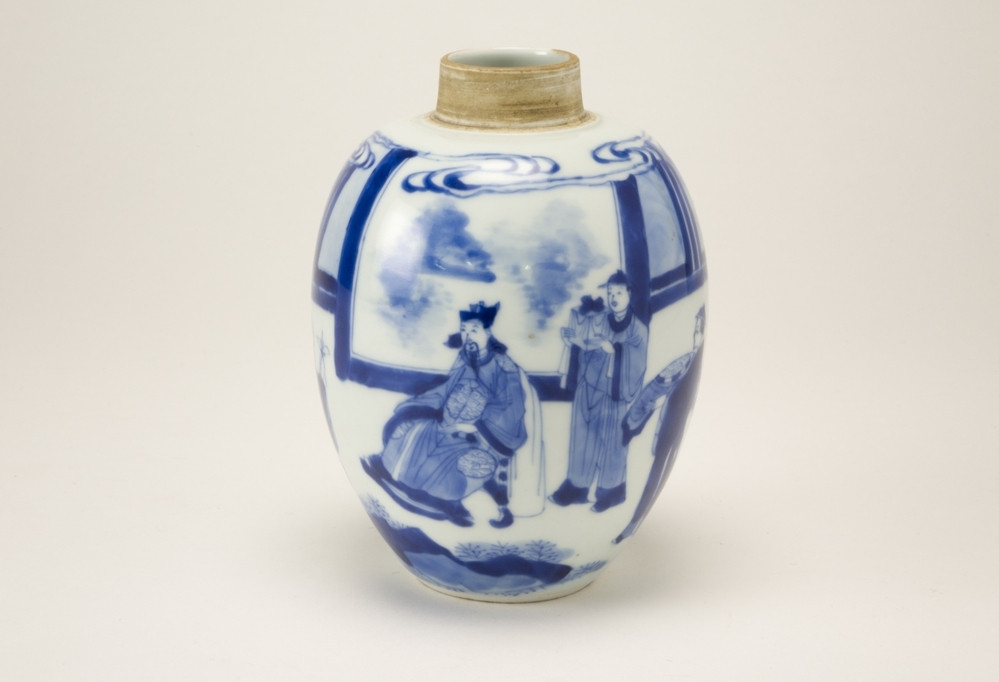 Bell-shaped cup and saucer with an image of Rebecca at the Well