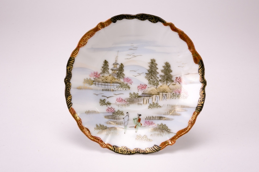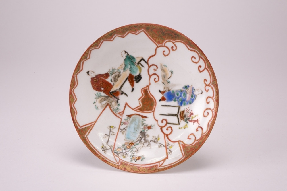 Keramiekmuseum Princessehof 4 Kopjes met decor van cartouches waarin bloem omgeven door bladwerk, imaristijl