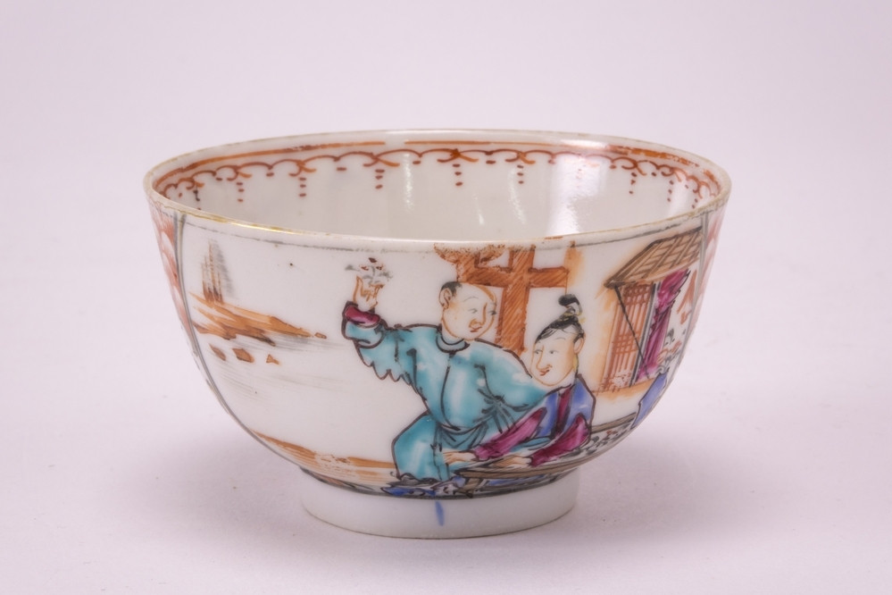 Keramiekmuseum Princessehof 2 borden, plat met hoekige rand en decor van rivierlandschap met brug en wilg