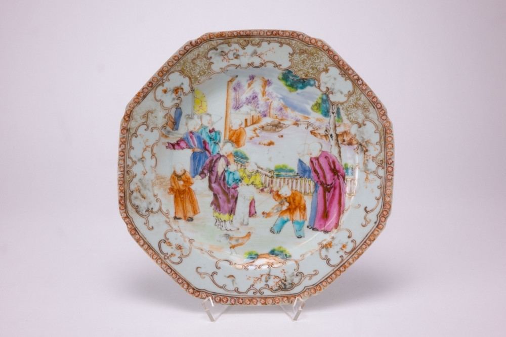 Keramiekmuseum Princessehof Schotel met decor maritiem kompas, mythische dieren en de acht trigrammen