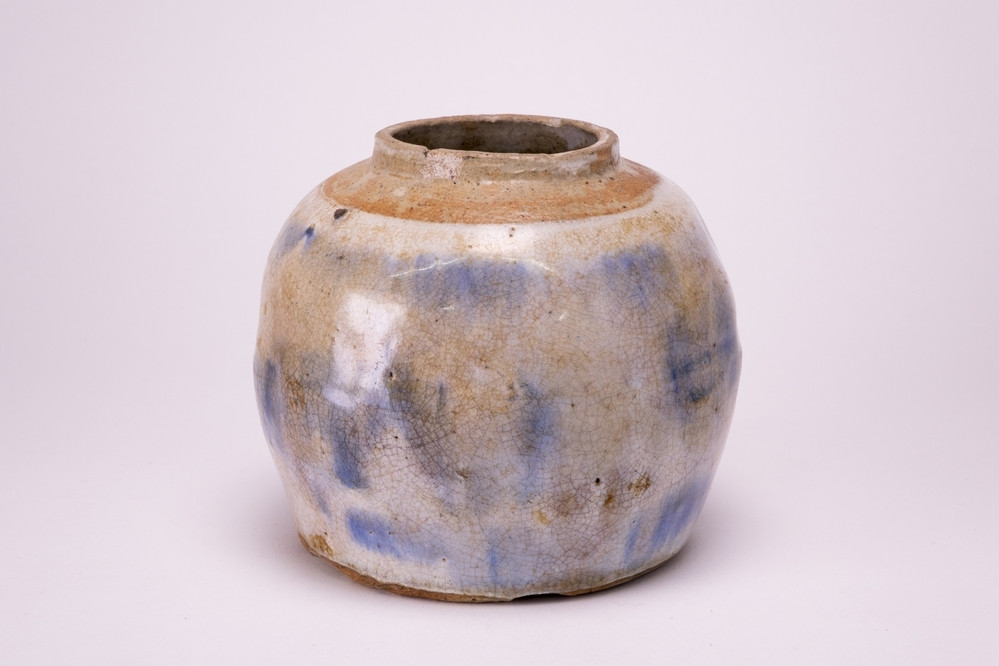 Keramiekmuseum Princessehof Schoteltje met intern een polychroom imaridecor van bloeiende planten, extern bruin