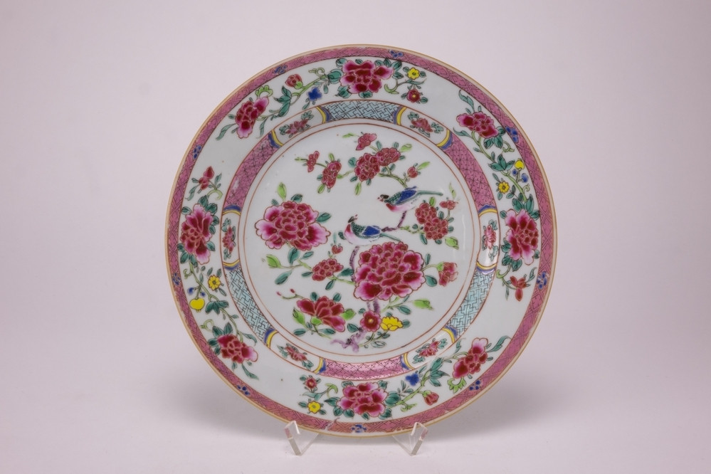 Keramiekmuseum Princessehof Kop en schotel met decor van rotspartijen en bloemranken, famille verte, 1 van 5