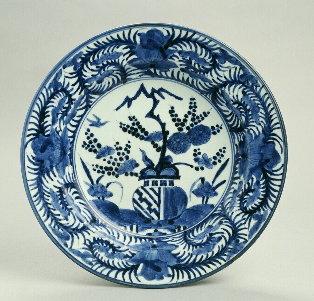 Keramiekmuseum Princessehof Miniatuurvaas, fragment, met decor in onderglazuurblauw van florale motieven