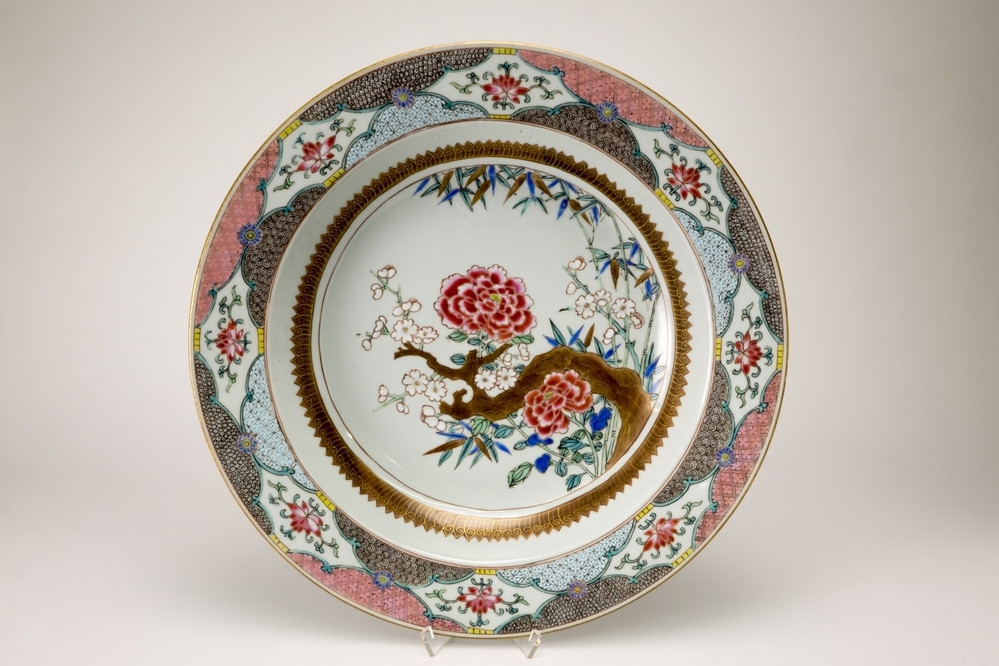 Keramiekmuseum Princessehof Kendi met zeer bolle tuit en vertikale randen op het lichaam, de nek met puntige vakken waarin krullende ranken