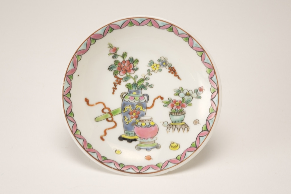 Rijksmuseum Amsterdam Pattipan uit het 'Swellengrebel theeservies' met een dubbel gekroond monogram en band met bloemranken