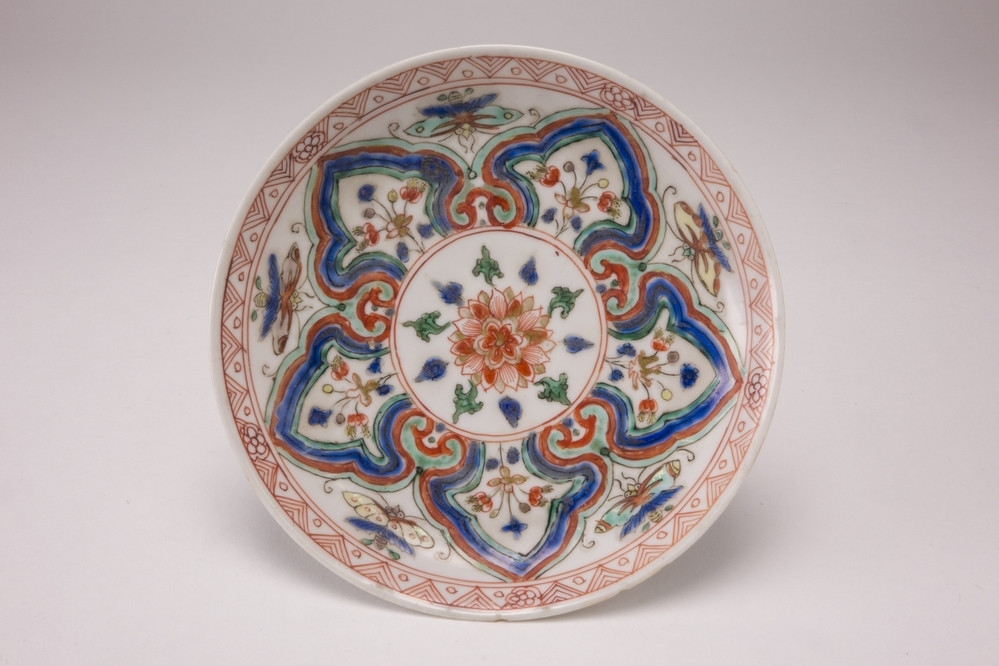 Keramiekmuseum Princessehof Kom met deksel en decor van vakken waarin geometrische motieven en medaillons