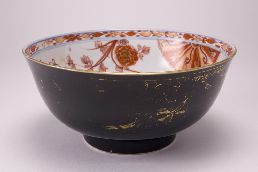 Keramiekmuseum Princessehof Vaas gedecoreerd met een paar vliegende kraanvogels op rode ondergrond in Satsuma 'Art Nouveau' stijl