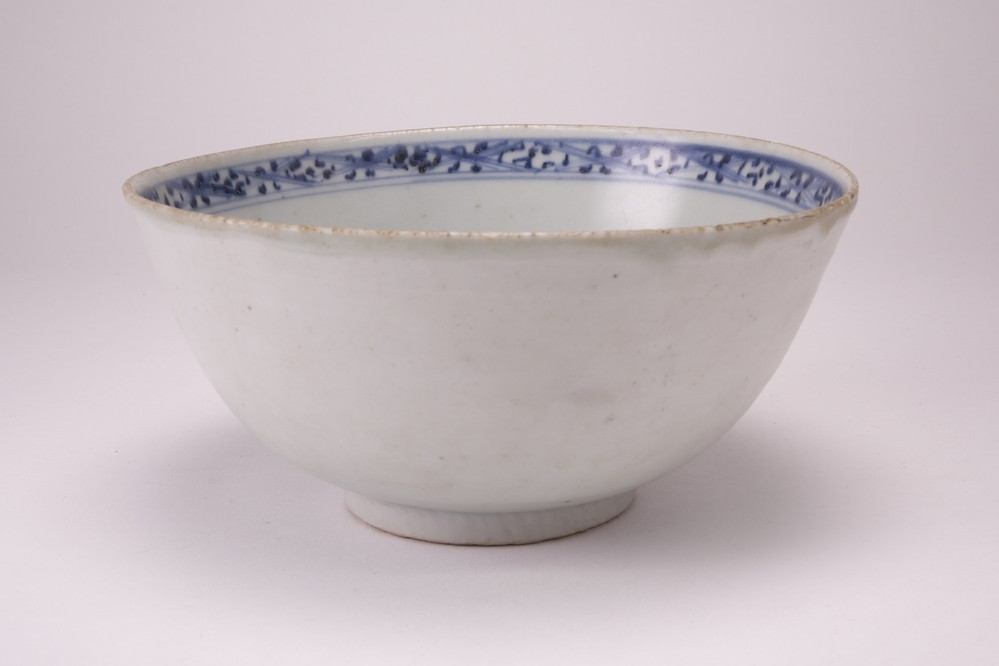 Keramiekmuseum Princessehof Kop met decor van 2 rivierlandschappen tegen wit fond met witte bloemranken, famille rose, encre de chine