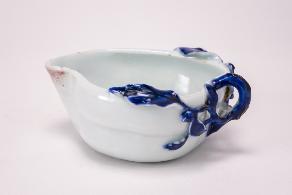 Rijksmuseum Amsterdam Rechthoekige theebus bedekt met lichtblauw glazuur en antiquiteiten in cartouches