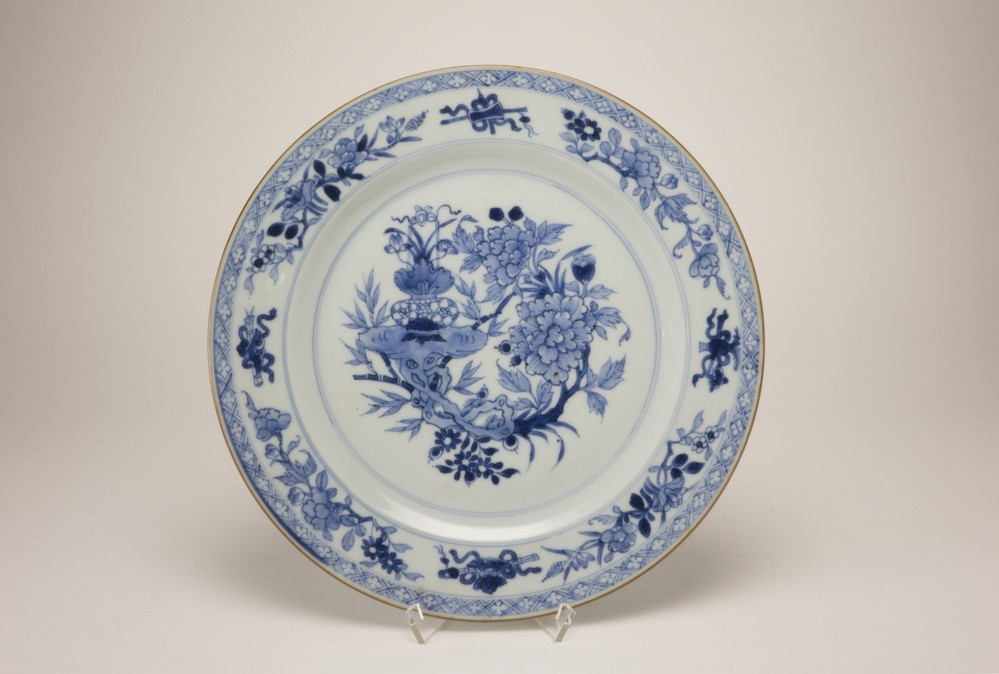 Kom (klapmuts) met pruimenbloesems op 'crackled ice'