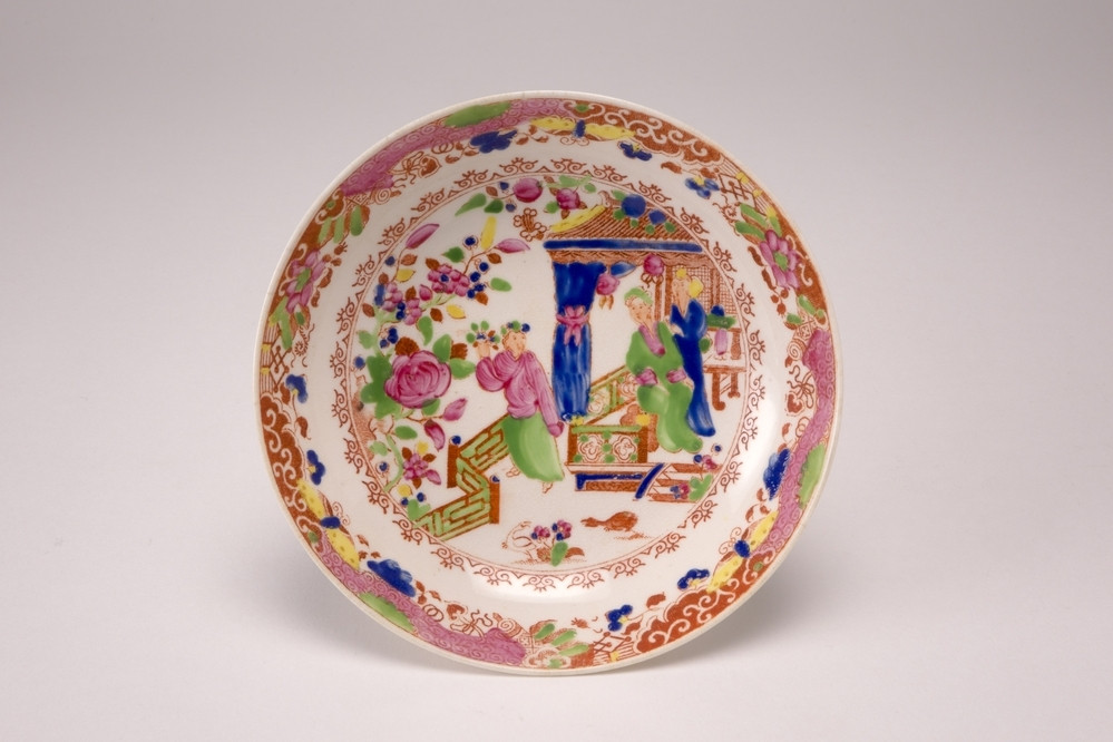 Schoteltje met polychroom decor van bloemen en perzik