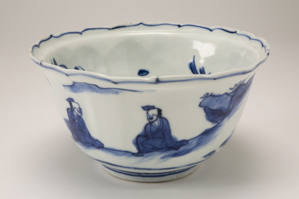 Rijksmuseum Amsterdam Bord met twee Chinese personen in een landschap, bloemranken en een vakdecoratie