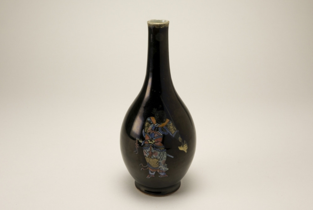 Keramiekmuseum Princessehof Miniatuurpot met houten deksel en polychroom floraal decor in Chinese imaristijl