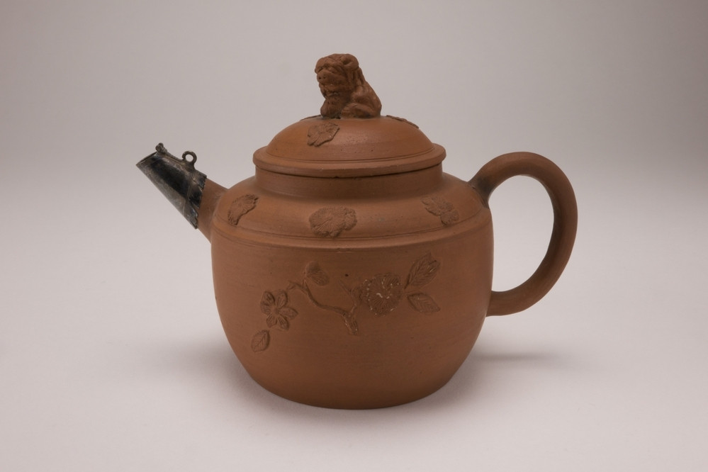 Keramiekmuseum Princessehof Pot zonder deksel met donkerblauw glazuur en decor van bloemen in verguldsel
