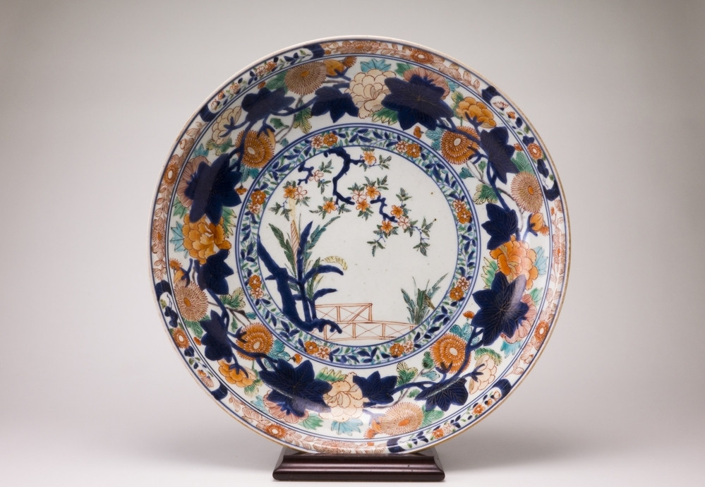 Keramiekmuseum Princessehof Schotel waarop afgebeeld een aantal wijsgeren rond een schildering, debaterend over yinyang