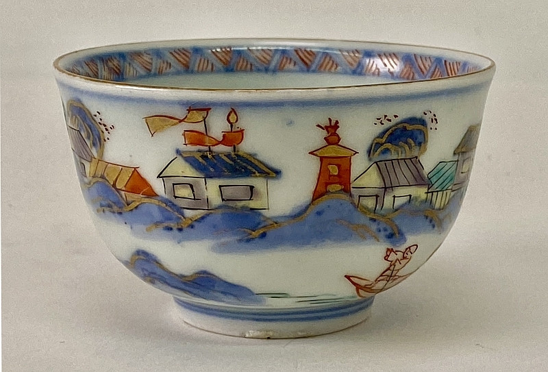 Keramiekmuseum Princessehof 3 kop en schotels met polychroom floraal decor in imaripalet en rijstkorreltechniek