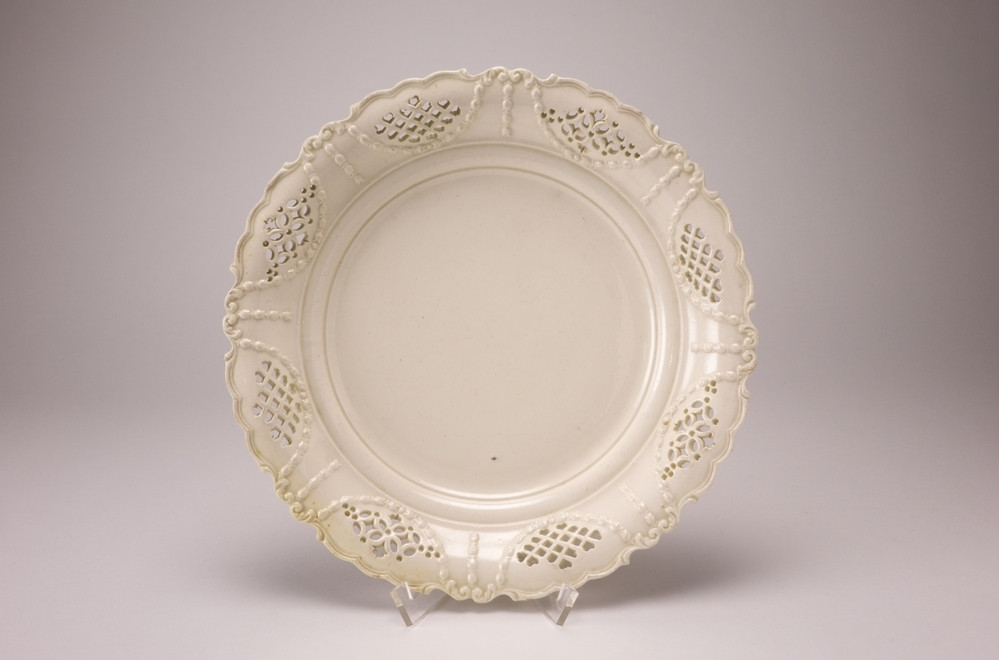 Keramiekmuseum Princessehof Deksel, plat, met decor van rode bloem en groene bladeren binnen 2 onderglazuurblauwe cirkels