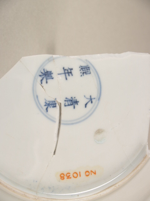 op de bodem in kobaltblauw vertikaal zesmerk Kangxi in dubbele ring