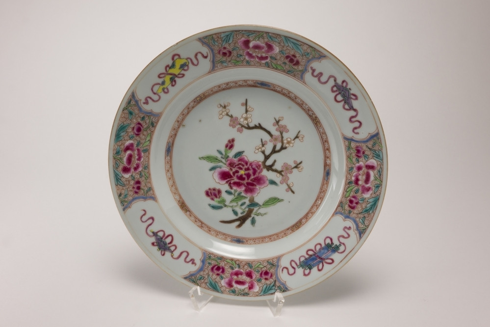Bord Meer informatie Collectie Jan Menze van Diepen Stichting Beschrijving Famille rose bord met op plat een prunustak met een pioenroos. Op de versierde rand vier uitsparingen met antiquiteiten. Details Materiaal/techniek gebakken keramiek Inventarisnummer JMD-P-0783 Objectsoort bord Deel dit voorwerp Deel dit object op Facebook Deel dit object op Twitter Deel dit object op Instagram Deel dit object op Pinterest Deel dit object op WhatsApp