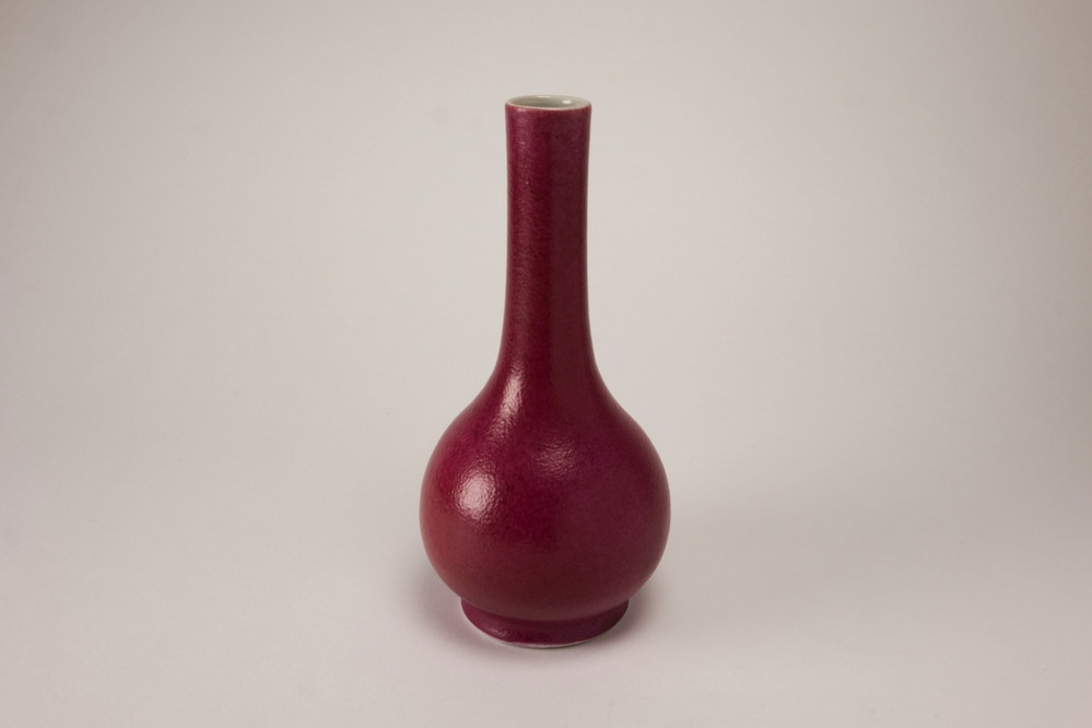 Roze rode bolvormige fles met smalle hoge hals. (rose du Barry). Yongzheng (?)