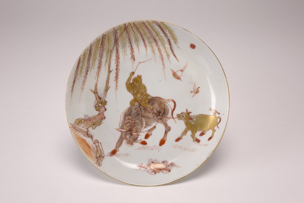 Schotel Meer informatie Collectie Jan Menze van Diepen Stichting Beschrijving Witte schotel met op het plat een decoratie in goud en rood (melk en bloed) van twee buffels met een jongetje en een boom. De jongen zit op de voorste buffel en neemt de andere buffel mee aan een touw. Details Materiaal/techniek gebakken keramiek Inventarisnummer JMD-P-1512 Objectsoort schotel Deel dit voorwerp Deel dit object op Facebook Deel dit object op Twitter Deel dit object op Instagram Deel dit object op Pinterest Deel dit object op WhatsApp