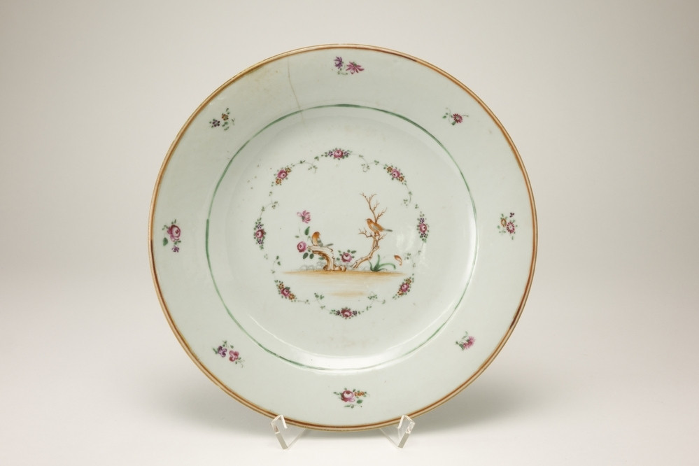 Bord Meer informatie Collectie Jan Menze van Diepen Stichting Beschrijving Wit dessertbordje met op de lip een bruine en een ijzerrode lijn. Op de rand acht ijle groen-roze bloempjes en op het plat in een ijle bloemenkrans twee kleine vogeltje op twee bruine takken. (Lowestoft) Details Materiaal/techniek gebakken keramiek Inventarisnummer JMD-P-1707 Objectsoort bord Deel dit voorwerp Deel dit object op Facebook Deel dit object op Twitter Deel dit object op Instagram Deel dit object op Pinterest Deel dit object op WhatsApp