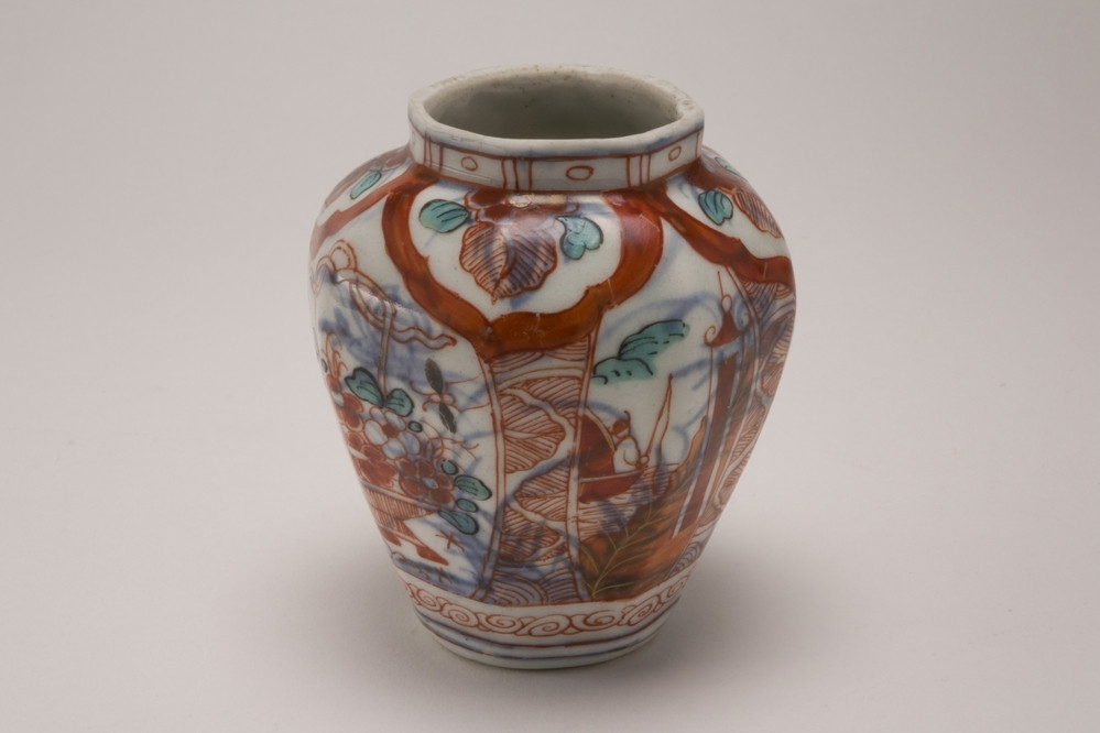 Pot Meer informatie Collectie Jan Menze van Diepen Stichting Beschrijving Amsterdams bont theebusje zonder deksel. Op de buitenzijde In emaille over gedecoreerd in ijzerrood en groen. Aan de buitenzijde vier uitsparingen met hierin een hengselmand en in de twee anderen een landschapje. Details Materiaal/techniek gebakken keramiek Inventarisnummer JMD-P-1723 Objectsoort pot Deel dit voorwerp Deel dit object op Facebook Deel dit object op Twitter Deel dit object op Instagram Deel dit object op Pinterest Deel dit object op WhatsApp