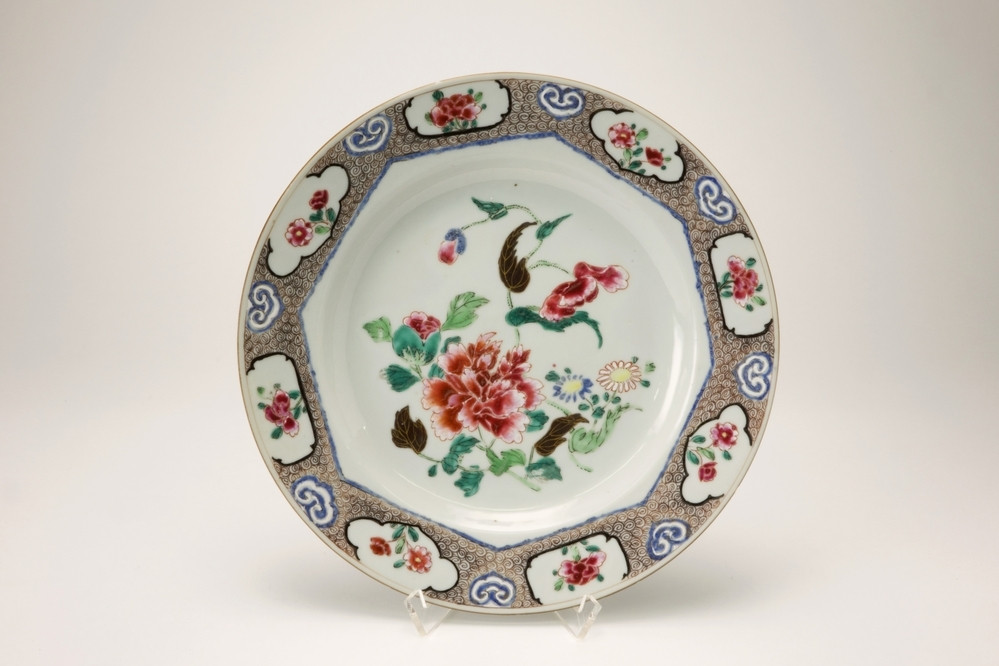 Bord Meer informatie Collectie Jan Menze van Diepen Stichting Beschrijving Wit rond Famille rose bord met acht hoekig bruin servetrand decor met acht uitsparingen waarin pioenrozen zijn aangebracht.. Op het plat een famille rose pioendecor. Details Materiaal/techniek gebakken keramiek Inventarisnummer JMD-P-2325 Objectsoort bord Deel dit voorwerp Deel dit object op Facebook Deel dit object op Twitter Deel dit object op Instagram Deel dit object op Pinterest Deel dit object op WhatsApp