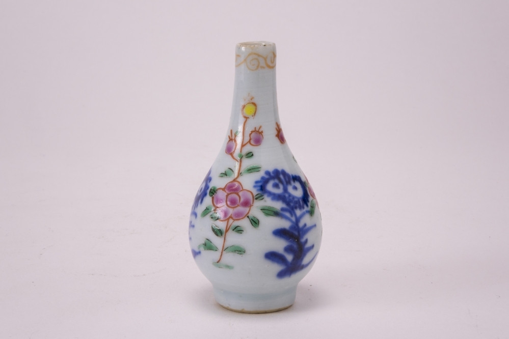 vaas Meer informatie Collectie Jan Menze van Diepen Stichting Beschrijving Famille rose knotsvormig miniatuurvaasje. Langs de rand een ijzerrood sierrandje. Op de buitenzijde drie bloemen in onderglazuur blauw, afgewisseld met drie faille rose bloemtakken. Details Materiaal/techniek gebakken keramiek Inventarisnummer JMD-P-2352 Objectsoort vaas Deel dit voorwerp Deel dit object op Facebook Deel dit object op Twitter Deel dit object op Instagram Deel dit object op Pinterest Deel dit object op WhatsApp