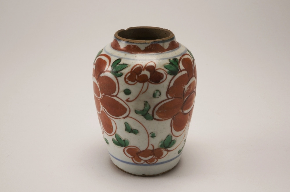vaas Meer informatie Collectie Jan Menze van Diepen Stichting Beschrijving Roodstenen Zhangzhou-type vaasje zonder deksel. Op de schouder en aan de onderrand een blauwe lijn op een witte ondergrond. Hiertussen steenrode bloemen met groene blaadjes. Details Materiaal/techniek gebakken keramiek Inventarisnummer JMD-P-0872 Objectsoort vaas Deel dit voorwerp Deel dit object op Facebook Deel dit object op Twitter Deel dit object op Instagram Deel dit object op Pinterest Deel dit object op WhatsApp