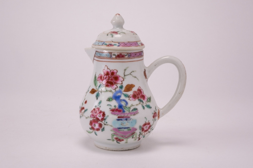 kan Meer informatie Collectie Jan Menze van Diepen Stichting Beschrijving Famille rose kannetje met knopdeksel. Langs de bovenrand een meerkleurige band. Op de kan meerkleurige blad- en bloemranken in roze, rood, groen, geel, blauw, turqoise en zwart. Details Materiaal/techniek gebakken keramiek Inventarisnummer JMD-P-2395 Objectsoort kan Deel dit voorwerp Deel dit object op Facebook Deel dit object op Twitter Deel dit object op Instagram Deel dit object op Pinterest Deel dit object op WhatsApp